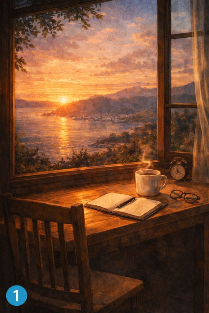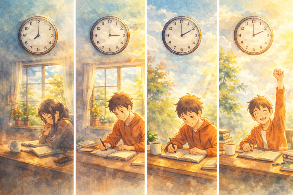 AI 이미지(1/3): ‘같은 1시간도 남는 방식이 다르다’는 메시지를 담은 감성 일러스트